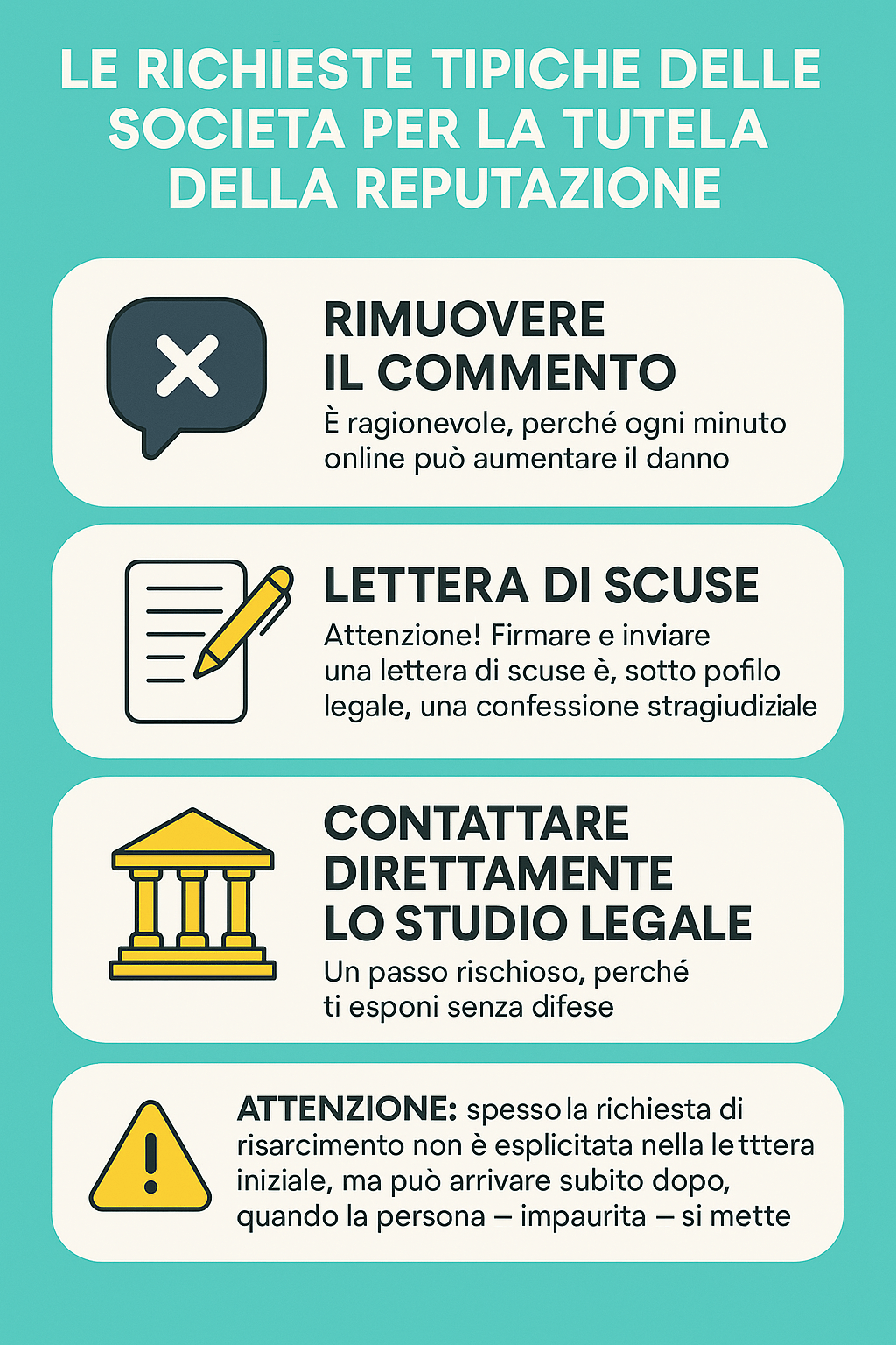 Attenzione: spesso la richiesta di risarcimento non è esplicitata nella lettera iniziale, ma può arrivare subito dopo, quando la persona – impaurita – si mette in contatto.